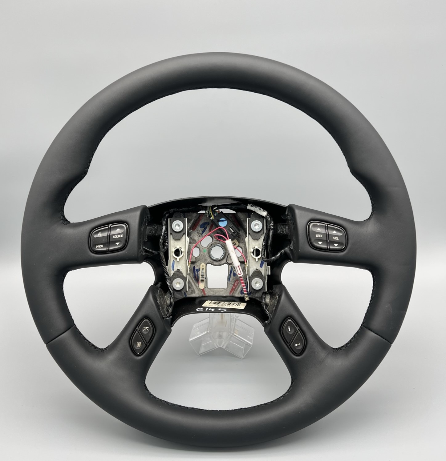 Diese Position beinhaltet ausschließlich die Dienstleistung des Neubezugs. Das abgebildete Lenkrad dient als Beispiel und wird ohne Airbag, Steuergeräte, Blenden und Tasten geliefert.